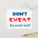 Postcard with a Positive Affirmation : "DON'T SWEAT THE SMALL STUFF" - a gentle reminder to keep everything in perspective. If you need to keep focused on your goal without getting into a panic when working on seemingly overwhelming projects, then pin this postcard up where you can see it everyday - it will help you stay calm and centred. Do you have friends or family, or perhaps colleagues at work who need encouragement ? Then this postcard will be a the perfect gift for them.