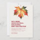 A simple text-based Don't Talk Politics Thanksgiving party invitation figuring a simple autumn leave, with burned orange customisable text.