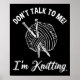 Don't Talk To Me! I'm Knitting. This funny knitting accessory would be a great knitting lover gift idea for the knitter in your life. Perfect for anyone who loves to knit and loves yarn! If knitting is your hobby, you're a yarn lover and you love crafting with knitting needles and balls of yarn, then this knitter accessory is for you!