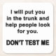 For the sarcasm lover in all of us. Check out this witty “I Will Put You in the Trunk and Help People Look for You. Don’t Test Me.” design on apparel and gifts.