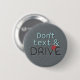 Don't text and Drive message button. The text reads "Don't text & DRIVE", and the background is made to look like asphalt. The word DRIVE looks like skid marks, with a blood splat.