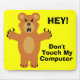 HEY! Don't touch my computer! Mousepad. Cartoon image of mean looking snarling bear! Text reads: HEY! Don't touch my computer! Makes a fun gift! Fully customisable.