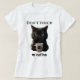 Hey there, coffee and cat lovers! Check out this adorable and funny t-shirt just for you! Featuring a funny grumpy black cat holding a cup of coffee in her paws.