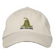 "Dont Tread On Me" Embroidered Hat. Gadsden Flag patriotic libertarian Revolutionary War historical symbol with snake. The Gadsden flag is a historical American flag with a yellow field depicting a rattlesnake coiled and ready to strike. Positioned below the snake is the legend "Don't Tread on Me". The flag was designed by and is named after American general and statesman Christopher Gadsden. The use of the timber rattlesnake as a symbol of the American colonies can be traced back to the publications of Benjamin Franklin. In 1751, he made the first reference to the rattlesnake in a satirical commentary published in his Pennsylvania Gazette. It had been the policy of Britain to send convicted criminals to America, and Franklin suggested that they thank the British by sending rattlesnakes to England. Considered one of the first flags of the United States, the flag was later replaced by the current Stars and Stripes (or Old Glory) flag. Since the Revolution, the flag has seen times of reintroduction as both a symbol of American patriotism and as a symbol of disagreement with the government.