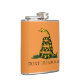 The flask itself is fine. It’s a cheap flask, obviously bought in bulk, however am prepared to overlook that. Given that it is a personalized item, I would have liked to have seen gift boxing instead of the generic packaging. Terrible printing, and/or quality. It’s a cheap, tacky vinyl. It is not cut straight and is also applied in a way that it is overhanging the bottom, causing the glue to catch on items and it will eventually roll and tear, damaging the wrap.
