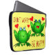 Dont Worry Be Hoppy Cute Cheerful Fun Green Frogs Laptop Sleeve