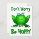 Dont Worry Be Hoppy Cute Green Frog w Blue Eyes Postcard