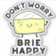 Don't Worry Brie Happy Funny Cheese Pun features a cute wedge of brie cheese reminding us to be happy . Perfect pun gift for family and friends who love cute brie cheese puns.