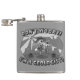 The flask itself is fine. It’s a cheap flask, obviously bought in bulk, however am prepared to overlook that. Given that it is a personalized item, I would have liked to have seen gift boxing instead of the generic packaging. Terrible printing, and/or quality. It’s a cheap, tacky vinyl. It is not cut straight and is also applied in a way that it is overhanging the bottom, causing the glue to catch on items and it will eventually roll and tear, damaging the wrap.
