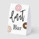 Donut Bar Wedding Paper Table Tent with small donuts adds a sweet and playful detail to your dessert table setup. Featuring charming donut illustrations, it instantly draws guests toward the treat station. The paper table tent design makes it easy to display on tables, shelves, or donut walls. Its cheerful look blends beautifully with both modern and rustic wedding themes. Perfect for guiding guests while enhancing the overall décor, it serves both function and style. The lightweight yet sturdy design ensures it stays in place throughout the celebration. Cute and eye-catching, it helps make your donut bar a memorable highlight of the day.