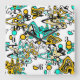 Doodle, abstract , creative , cyan , yellow , black , white , fashionable, fantasy