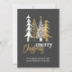 Stylish Company Christmas flat card, done in grey, with doodle art graphics of white and gold Christmas trees, at the top. Personalise the text to read what you want. Great corporate holiday greeting card the employees will appreciate.