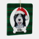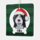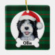 This Bernedoodle dog with santa hat ornament is a great gift! The green plaid background matches all holiday decor. The bernedoodle was hand painted by me and made available as this adorable ornament! Customize the text to personalize the gift.