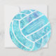 This cute volleyball themed round party invitation has a turquoise colour theme with blue & teal accents and features the outline image of a simple volleyball - a delicate doodle pattern of paislies, flowers and feathers in white covers all but one of the volleyball's textured-look panels - personalise with her celebration details - by katz_d_zynes