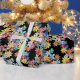 Simple ink-drawn and watercolored flowers pop against a black background. The crazy mix of colours reminds me of a wildflower meadow during the height of summer.