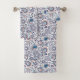 Modern doodle paisley pattern. Ornamental teardrop and floral motifs in a repeating seamless print in dark blue with bright blue and chestnut red accents. Set on a white background