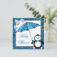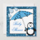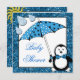 Super cute penguin with blue polka dots bow tie and with a polka dots and stars umbrella with glittery rain coming down but when the bright glittery yellow sun comes out, the umbrella is gone. Poof! Perfect for a boy baby shower.
