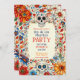 At the top and bottom of the invitation, two beautifully decorated sugar skulls sit prominently, each adorned with intricate patterns and bright colours. These sugar skulls act as focal points, celebrating the traditional Día de Muertos symbols in a festive and joyful way.