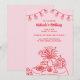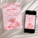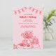 Charming red and pink adult birthday invitation with a hand-drawn doodle illustration is perfect for elegant celebrations hosted at restaurants, private venues, home, or cosy gatherings. The design features whimsical red line art of a table set with wine, flowers, and appetizers beneath a string of glowing party lights on a pink background creating a warm and festive ambiance. Clean serif typography pairs with playful script for a modern yet classic look, while the simple blue and white colour scheme keeps the focus on your personalised details. Ideal for milestone birthdays or stylish evening events, this invitation blends casual sophistication with artistic charm. Available as printed cards or an instant digital download.
