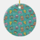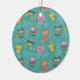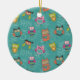 Doodled Owls on Teal Ceramic Ornament