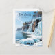 A keeping in touch postcard with an illustration of Door County, Wisconsin in the winter The pretty dune ledges covered in icicles and frozen blue ice, blue water of Lake Michigan hitting against the bluffs, Sun shining lighting up the sparkling snow and ice.