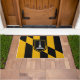 Crafted with meticulous attention to detail, this door mat proudly showcases the iconic flag of Baltimore, with its striking design featuring a bold black background adorned with the city's iconic yellow and white chequered pattern and the crest of Lord Baltimore.