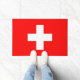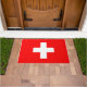 Make a stylish entrance with our door mat featuring the flag of Switzerland! This door mat proudly displays Switzerland's iconic flag design, featuring a white cross centred on a square red background.