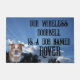 This doormat displays the message, "Our wireless doorbell is a dog named Rover". The name of the dog is customisable with your own dog's name. A cutout photo of a dog is featured in the lower left corner which you can replace with your own dog's photo. The background is a sunset with rays from behind fluffy clouds. If you need help customising, please contact me at jen@jenaleefamilystorykeeper.com