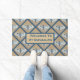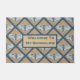 Welcome to my Bungalow! This attractive doormat is designed for a Craftsman Bungalow. The design is made with Moth tiles inspired by a classic Arts and Crafts Stained Glass design. The colours are ochre, white and blue. The tiles are laid diagonally with a blue trellis effect. You can compose your own message. Are you serious or funny? It's your turn to be creative.