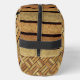 Brick design in a basket weave pattern. Red, Orange, and shades of yellow in the brick colours.
