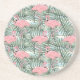 Dorm Coaster With Pink Flamingoes Cute Palm Leafs