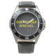 My husband loves the watch, he likes the dial, the graphics, the band, and it keeps perfect time.