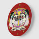 Two happy sugar skull brides with a banner beneath that says "True Love is Forever". You can change the background colour (Click on Edit>Background colour), and add text to personalise this clock. This clock also makes an awesome shower, wedding, Valentine's Day or anniversary gift!
