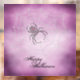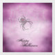 A dot art black widow spider sits in a white web against a purple background.