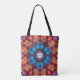 This groovy mandala features blue, red, and orange. It was inspired by paint dot mandalas. Trippy geometric patterns for the modern hippie!