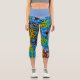Dot Mandala Flower Blue Yellow and Green Capri Leggings
