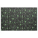 Fabric with a simple polka dot pattern with green and grey circles and elipses on a black background. Great for your many DIY ideas.