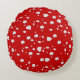 dot pattern with red toadstool mushroom round cushion
