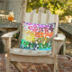 DIGITALLY MANIPULATED PHOTOGRAPH RESULTING IN THIS BRIGHT AND CHEERY, MULTI-COLORED OUTDOOR PILLOW: PINK. MAGENTA. RED, ORANGE, YELLOW, BLUE, GREEN, BLACK AND WHITE COLORS.