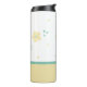 Pretty Thermal Tumbler done in teal, yellow, and white, with whimsical dots and flowers. Personalise the one letter monogram, on the front of the tumbler. Great gift idea for her.