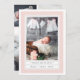 Announce your baby girl's arrival with our sweet double sided birth announcements featuring four favourite newborn photos and an elegant colour palette of blush and grey. Front side showcases a single vertical orientation photo with baby girl's name and birth stats, framed by a subtle dotted pattern in pink and white, while the back features three full-bleed photos -- two square and one landscape -- with your names or personal message.