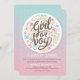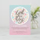 A delightful gender reveal invitation with a blue and pink gradient background and white polkadots. A large label features the words Girl or boy and is trimmed with baby elements. <br/><br/>The card is easy to customise with your wording, font, font colour, paper shape options and choice of six paper types.<br/><br/>Not exactly what you're looking for? All our products can be custom designed to meet your needs at no extra charge.<br/><br/>Simply contact us at askpixieprints@aol.com.<br/><br/>Coordinating products available: Just ask us!