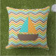 Dotted Sailboat on Chevron Stripe Outdoor Pillow