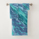 Bath Towel Set Of 3 bathroom decor accessory with Dotted Turquoise X Pattern artwork design image by TheFabricSeal | Zazzle. This beautiful x pattern design has four mirrored image sections and repeating patterns coloured in Mediterranean and South Pacific tropical island beach and ocean water inspired colours. Colour palette tones of blue, turquoise blue, green, turquoise green, purple, silver and grey. This design compliments our other design titled Dotted Turquoise X Repeat Pattern for mixing and matching products together.