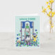 Wish a very happy 3rd birthday to a special child with this bright and colorful birthday card. Little Dotty Dog, the Dalmatian, and friends have fun whizzing down the slide into the ball pit of the soft play (indoor jungle gym). The verse on the front reads Wild & Three. Color scheme is turquoise, blue, green, purple, and yellow.
