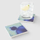 The coasters are gorgeous, a quality feel and heavy weight. They look like a precious archeological find. A rustic stone juxtaposed with a modern floral black and white print. I like the way the print goes slightly imperfect on the cut stone edges giving them a kind-of natural beauty.