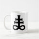Enjoy your beverage of choice with the classic double black on white Brimstone symbol adorned white mug. The Brimstone symbol was used by Anton Szandor LaVey at the top of The 9 Satanic Statements in The Satanic Bible.