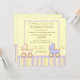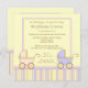 Twice as nice! That's the announcement on this baby shower invitation that features adorable pink and blue baby carriages with pink, blue, yellow, and tan stripes on a yellow background.