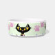 A fun and cute swanky retro illustration of a vintage style colourful and unique cartoon cats ceramic pet water or food bowl Meow. This cute cat design has a sassy and fun colourful retro flair. It’s perfect for cat lovers everywhere so get a cute retro kitty bowl today.