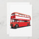 A red double decker bus out on the street. This design looks really effective on this Invitations